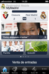 - En algunos terminales, recibir la reproducción en 3D de los videos de los goles del Real Madrid, pocos minutos después de ocurrir en el campo. Estos videos disponen de comentarios, subtítulos y vista en tres ángulos de cámara distintos, incluyendo cámara lenta.