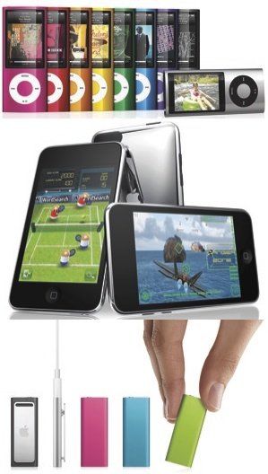 Los iPod® forman la familia de reproductores de música digital más popular del mundo, con más de 220 millones de unidades vendidas. La nueva gama de productos navideños de Apple incluye el iPod shuffle® en cinco fantásticos colores, desde solo 55 €; el iPod classic®, con un nuevo modelo de 160 GB con capacidad para albergar hasta 40.000 canciones por 229 €; el nuevo iPod nano con cámara de video, disponible en nueve colores brillantes de aluminio pulido desde 139 €; y el revolucionario iPod touch® por el increíble precio de 179 €.