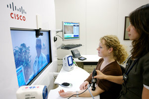 En la actualidad, una gran cantidad de pacientes tienen que trasladarse muchos kilómetros para recibir el diagnóstico correcto de un médico especialista o para ser atendidos en un centro hospitalario. Por esa razón, y para evitar desplazamientos innecesarios en casos como el de los enfermos crónicos, Cisco y Telefónica pondrán a disposición de los hospitales esta solución de colaboración que facilitará a los pacientes la consulta con médicos situados en otros países o en otras ciudades.